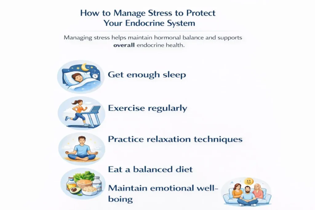 • Maintain emotional well-being – Social support, hobbies, and counseling reduce psychological stress and protect hormonal health.
